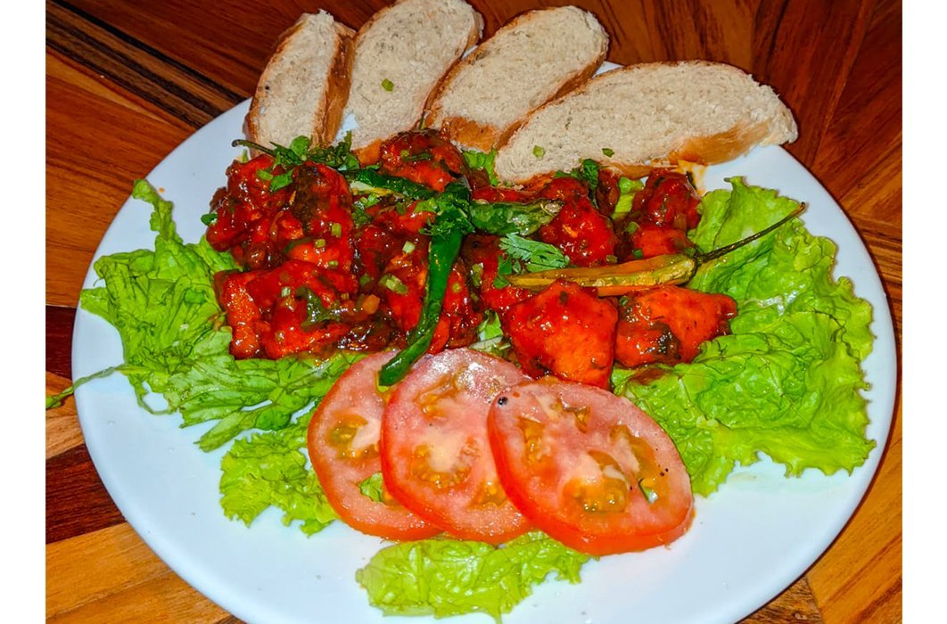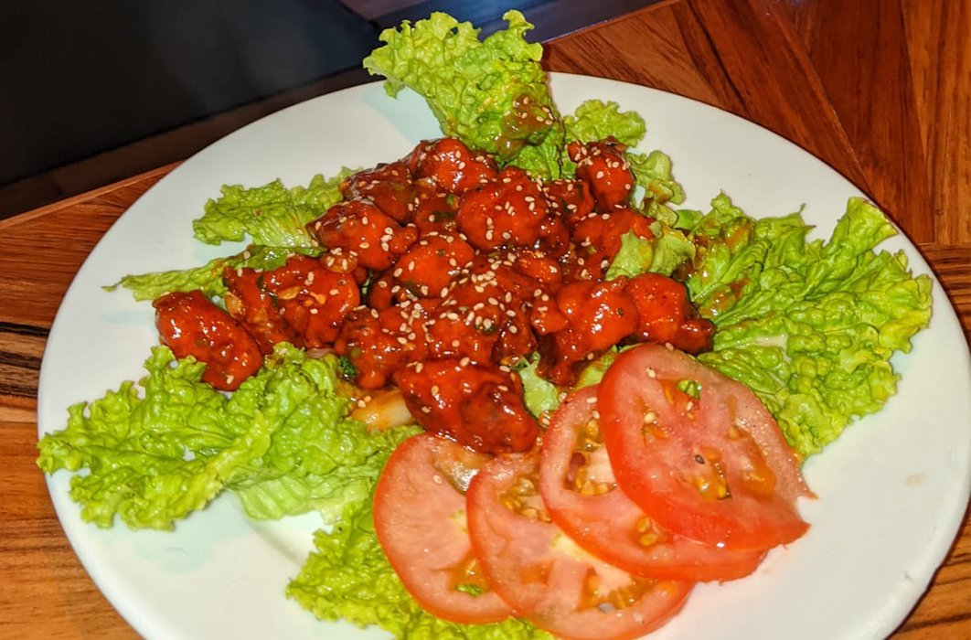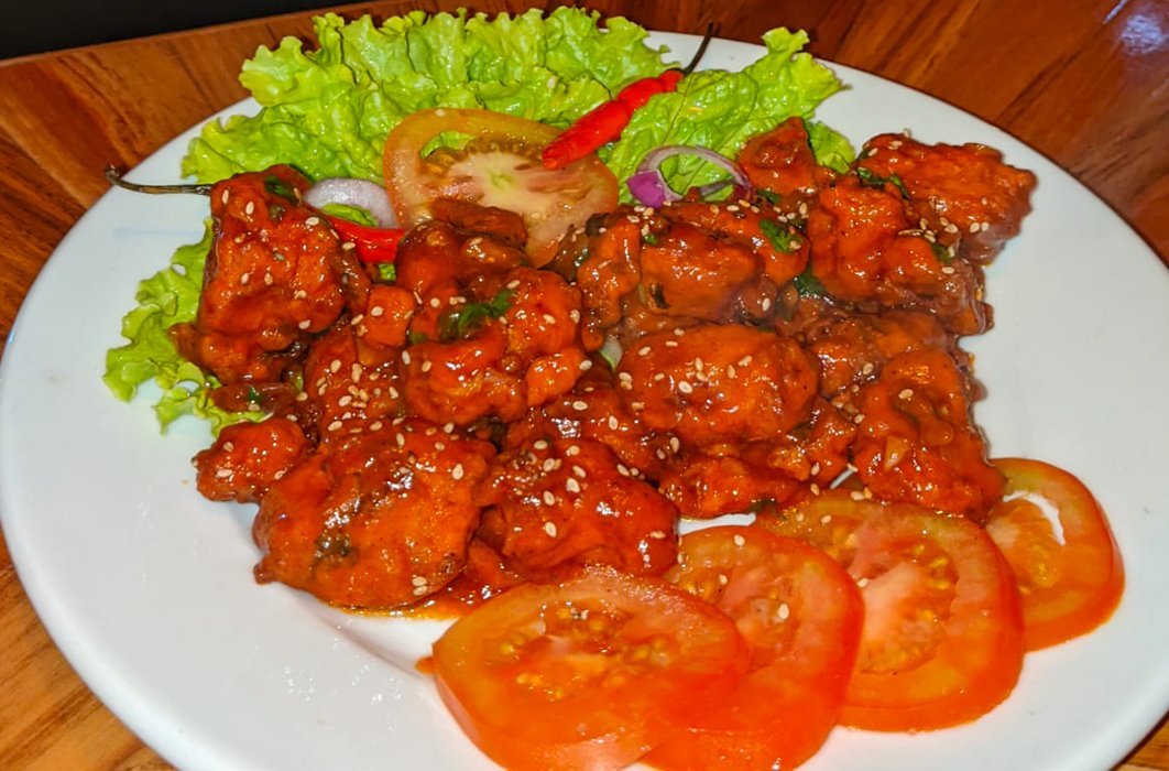 D'origine indienne composé de morceaux de poulet marinés, frits et servis avec une sauce épicée ou aigre-douce.