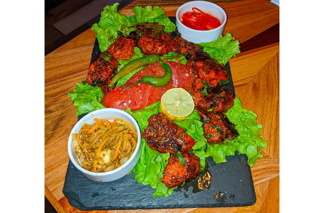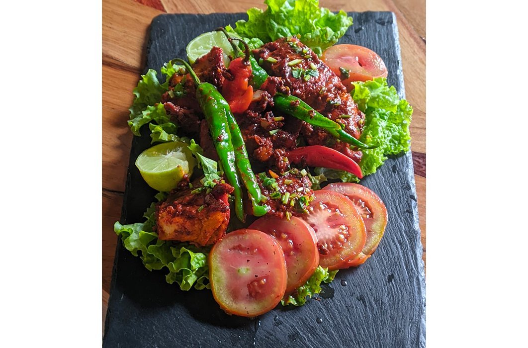 Plat de poulet grillé mariné dans des épices et du yaourt, qui lui donne une saveur épicée et légèrement fumée.
