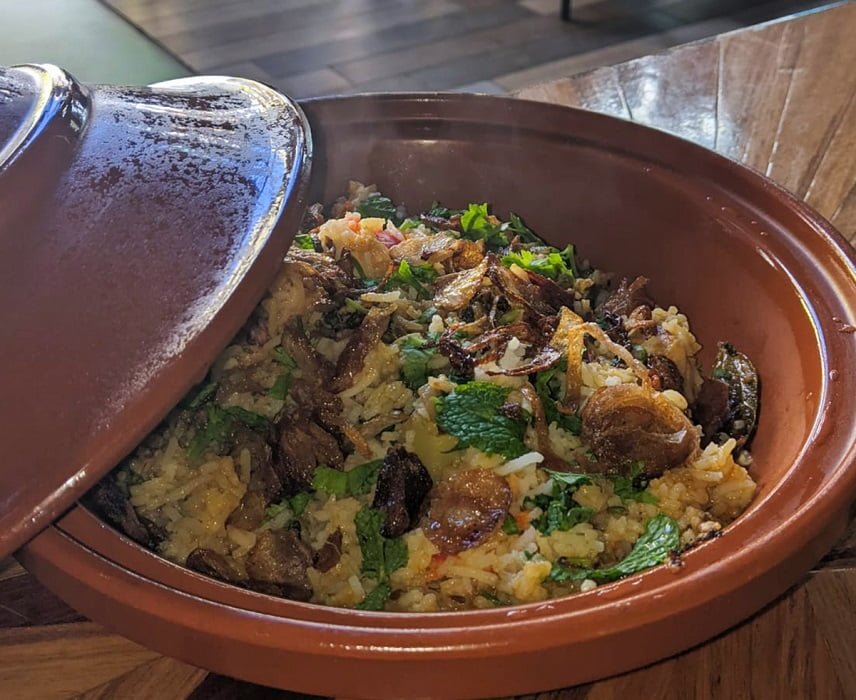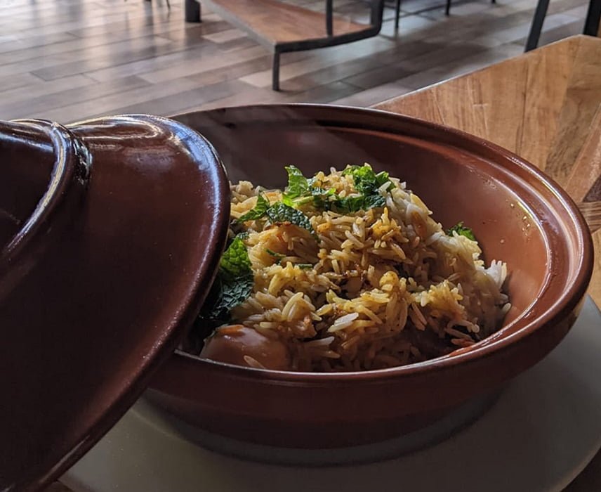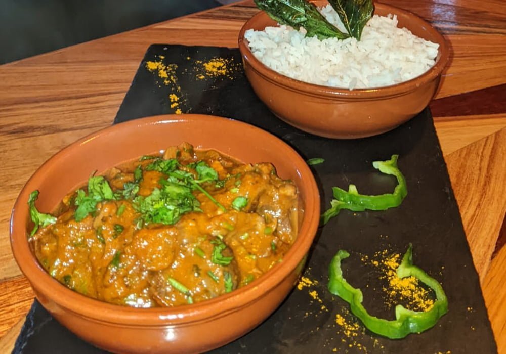 Plat d'agneau traditionnel originaire du Cachemire, cuit dans une sauce épicée, légumes et aromatique (Avec acc)