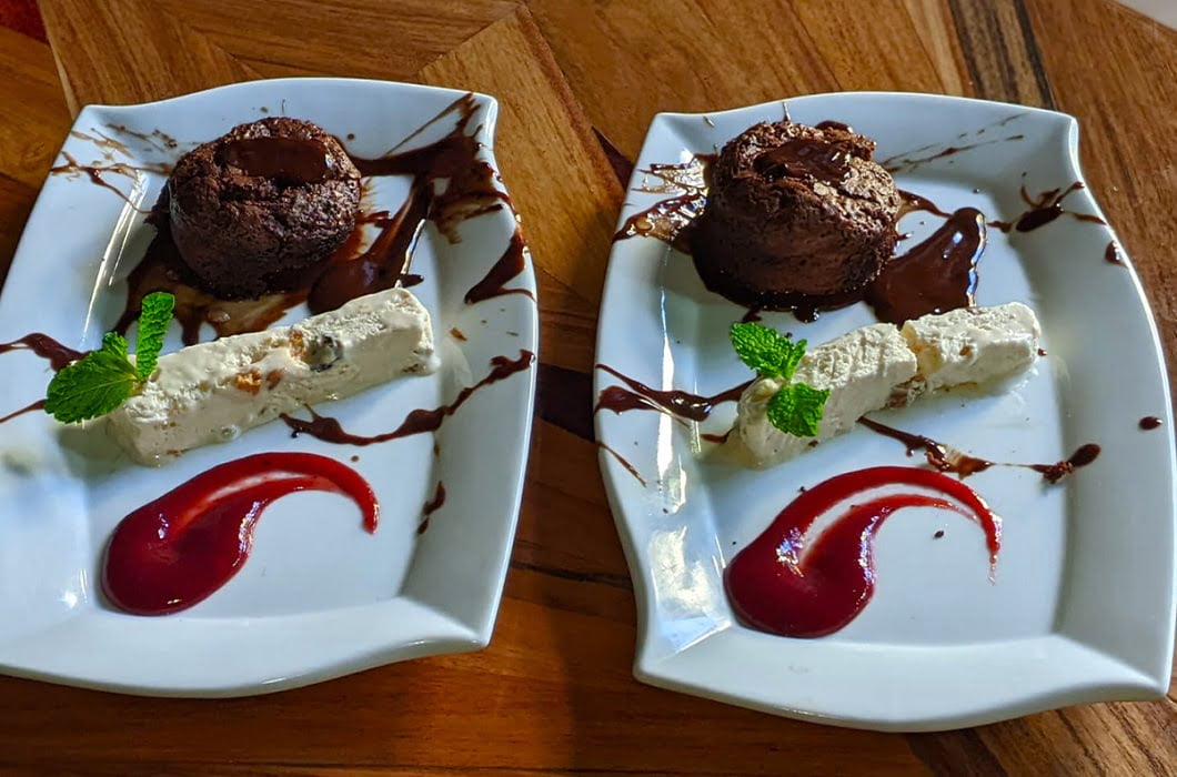 Chocolat moelleux, accompagné de glace ou nougat glacé