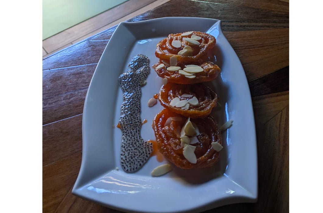 Un dessert indien sucré, en forme de spirale, fabriqué à partir de farine de blé frite, trempé dans un sirop de sucre