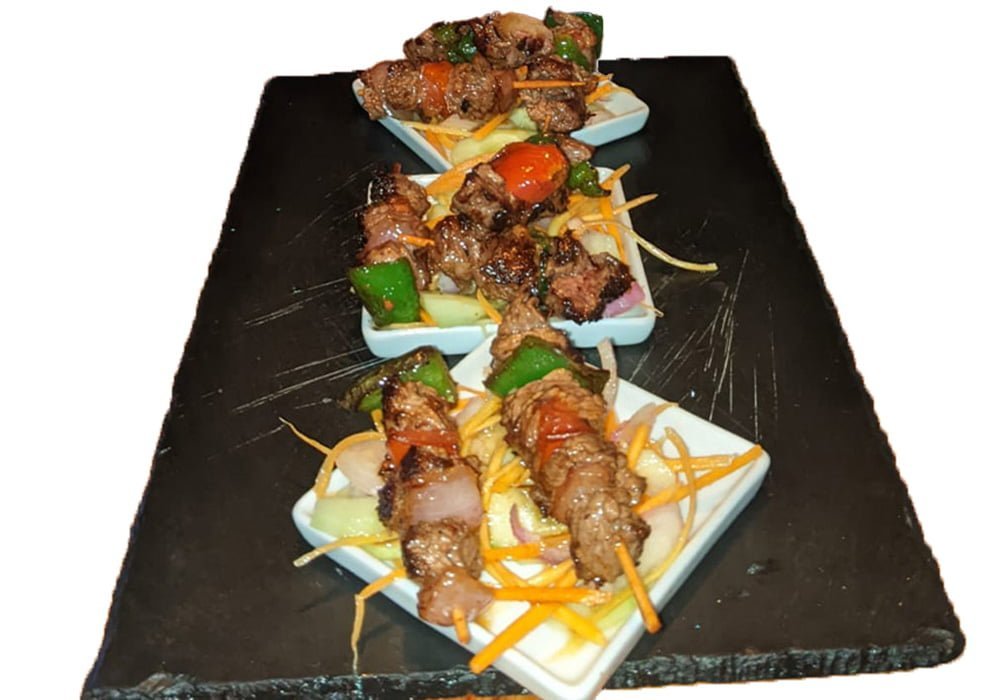 Cinq brochettes de poulet mariné dans un mélange d'épices et grillées pour une saveur épicée et tendre