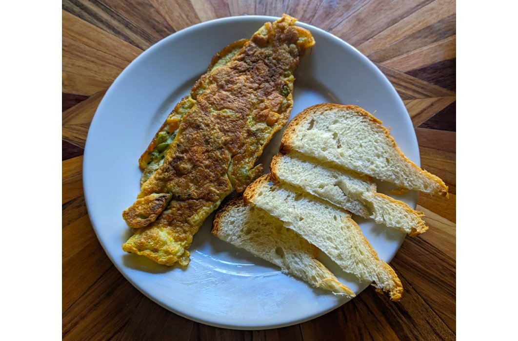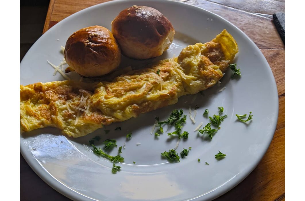 Une préparation culinaire à base d'œufs battus et cuits, agrémentée d'un fromage
