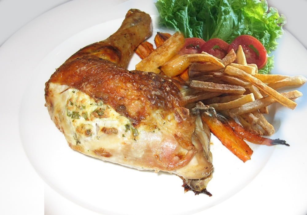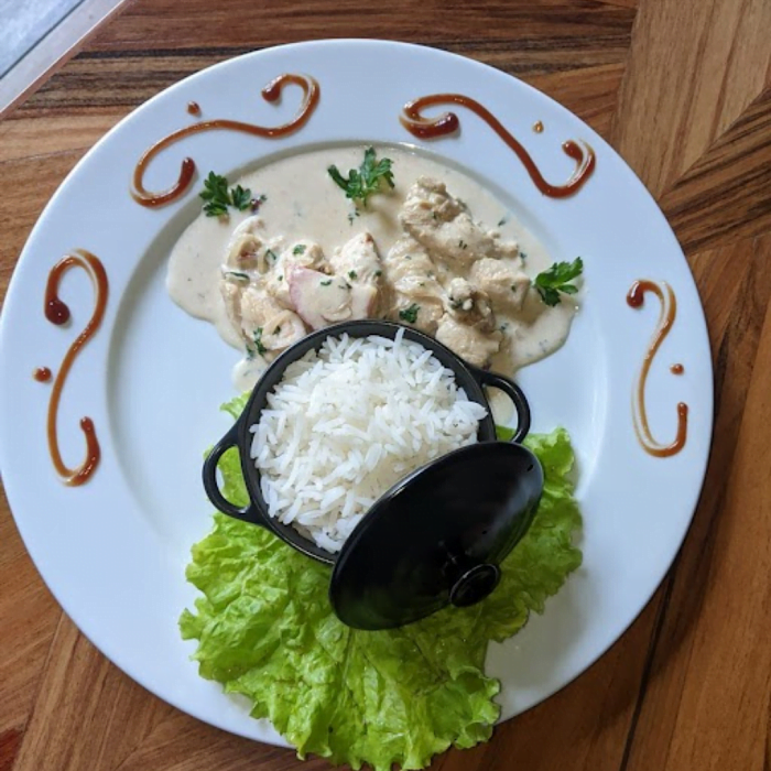 Plat de poulet mariné dans une sauce crémeuse et grillé pour une texture tendre et une saveur douce et crémeuse.