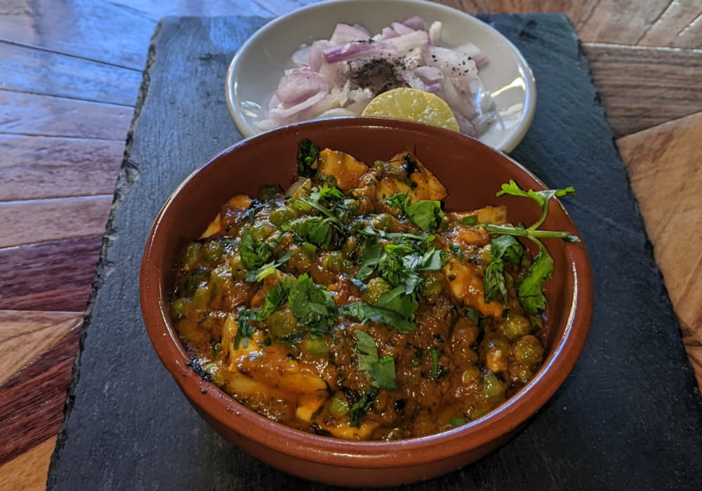 Fromage paneer, Petit poids, sauce épicée (Avec acc)