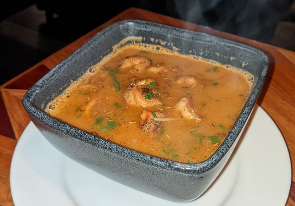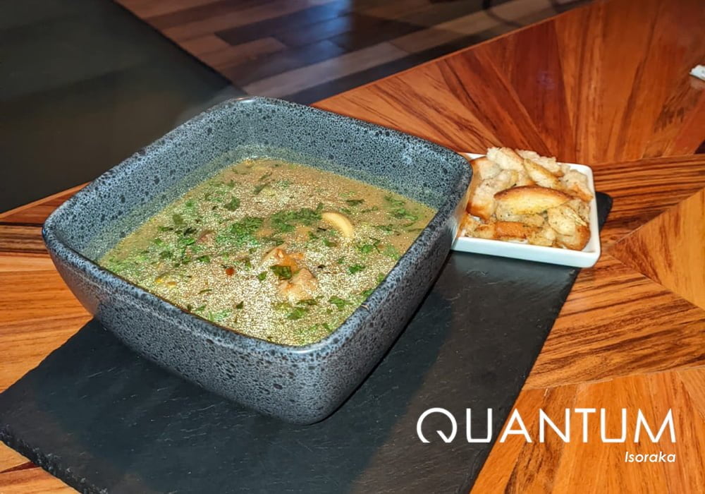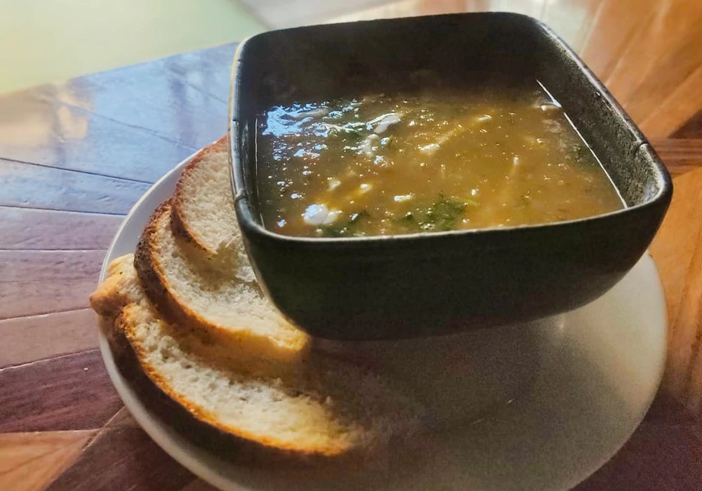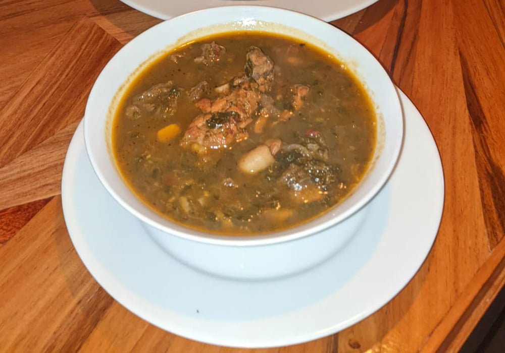 Bouillon clair de viande et de brèdes, relevé d’un léger arôme de gingembre. Le plat emblématique de Madagascar