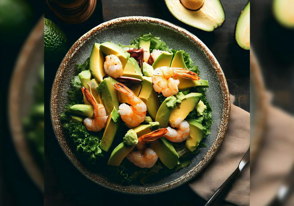 Une préparation rafraîchissante où des avocats mûrs sont coupés en dés et mélangés avec des crevettes décortiquées.