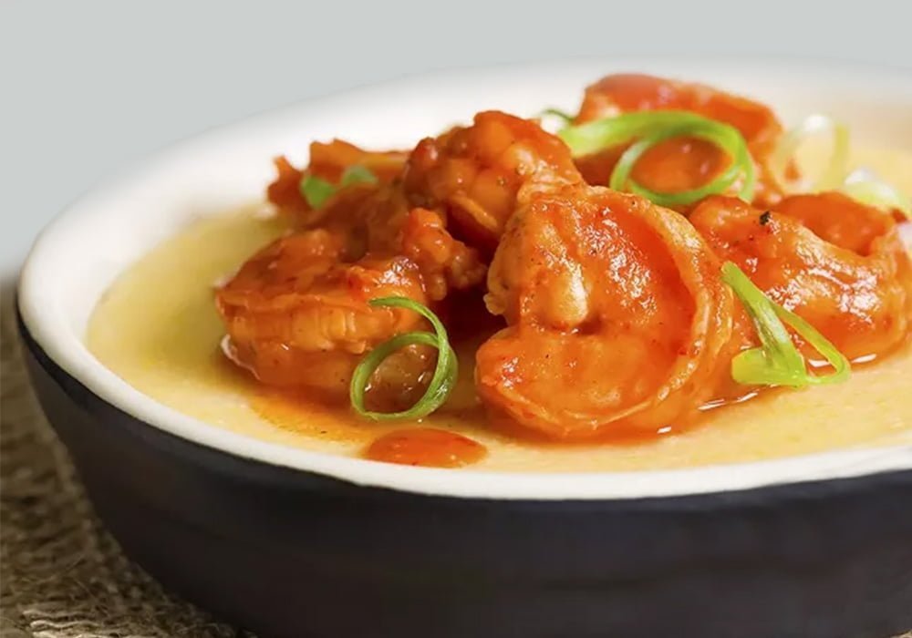 Crevettes, sauce crémeuse épicée (Avec acc)