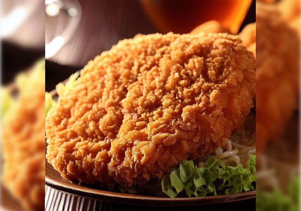 Plat de poulet mariné dans une sauce épicée et frit jusqu'à ce qu'il soit croustillant à l'extérieur et tendre à l'intérieur.