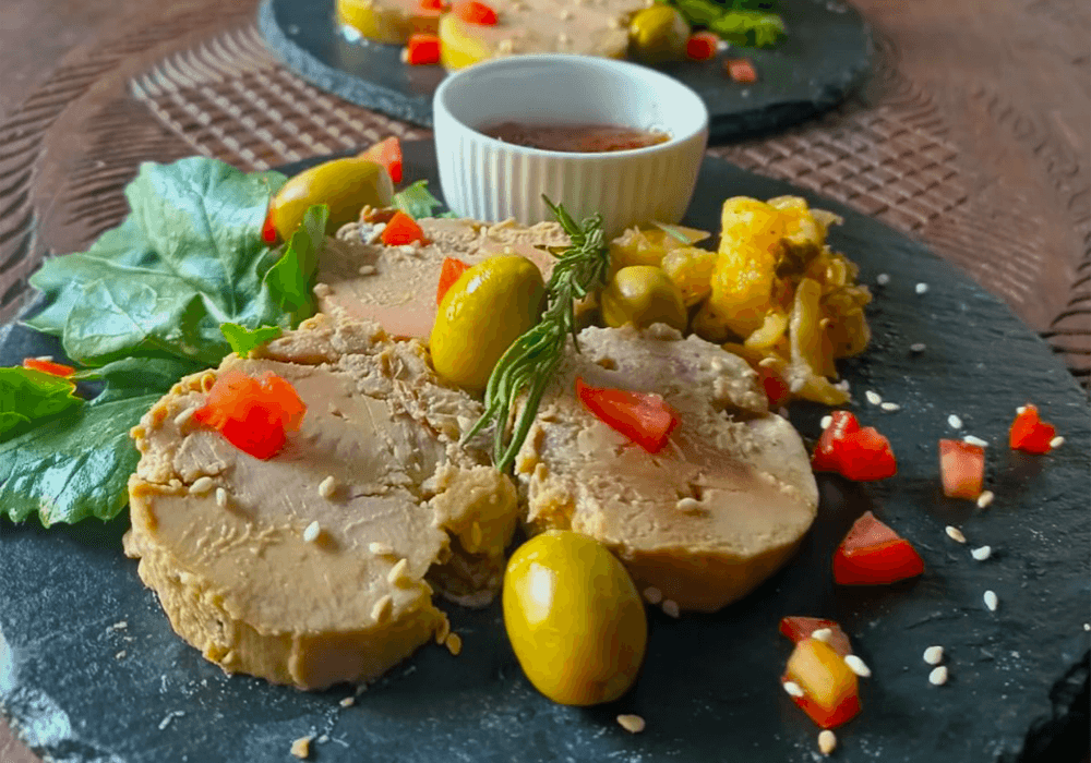 Foie grass, champignons sautés à l'huile d'olive, sel et de poivre.